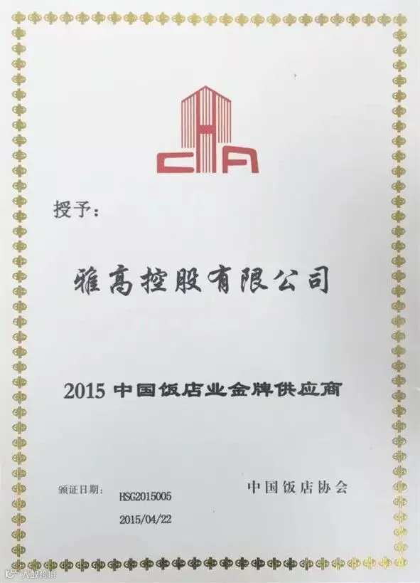 此外,大会表彰了一批对中国饭店业设计与装修作出突出贡献的优质供应商,雅高控股作为国内领航上市的石材企业,以优质的产品和过硬的服务被评选为“2015中国饭店业金牌供应商”,成为本届饭店大会唯一获此殊荣的石材生产商。凭借雄厚的研发实力和精益求精的产品品质,雅高大理石成为地产龙头和奢华高端酒店的极致之选,万达文华、铂尔曼、喜来登等国内外知名龙头酒店,都不约而同选择了雅高大理石,此次获评“2015中国饭店业金牌供应商”奖项,实属实至名归。
