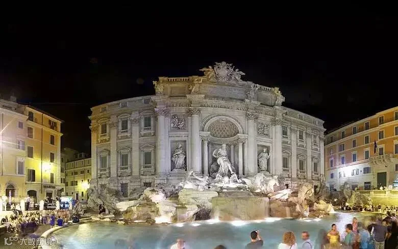 喷泉于1762年完工,是由建筑师尼科拉·萨尔维(NicolaSalvi)设计完成,历时30年建成。是一组大型大理石雕塑喷水池,主题描绘海神得胜的景象。巴洛克式的建筑风格,外形美观、装饰丰富、立体感强、整个喷泉气势磅礴、大气恢宏。
