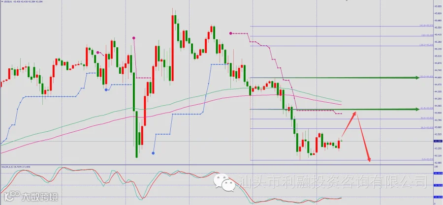 导读: 今日的操作策略:等待价格反弹至43.82~44区域轻仓做空,止损设于44.6,止盈目标看上周五的低点43.