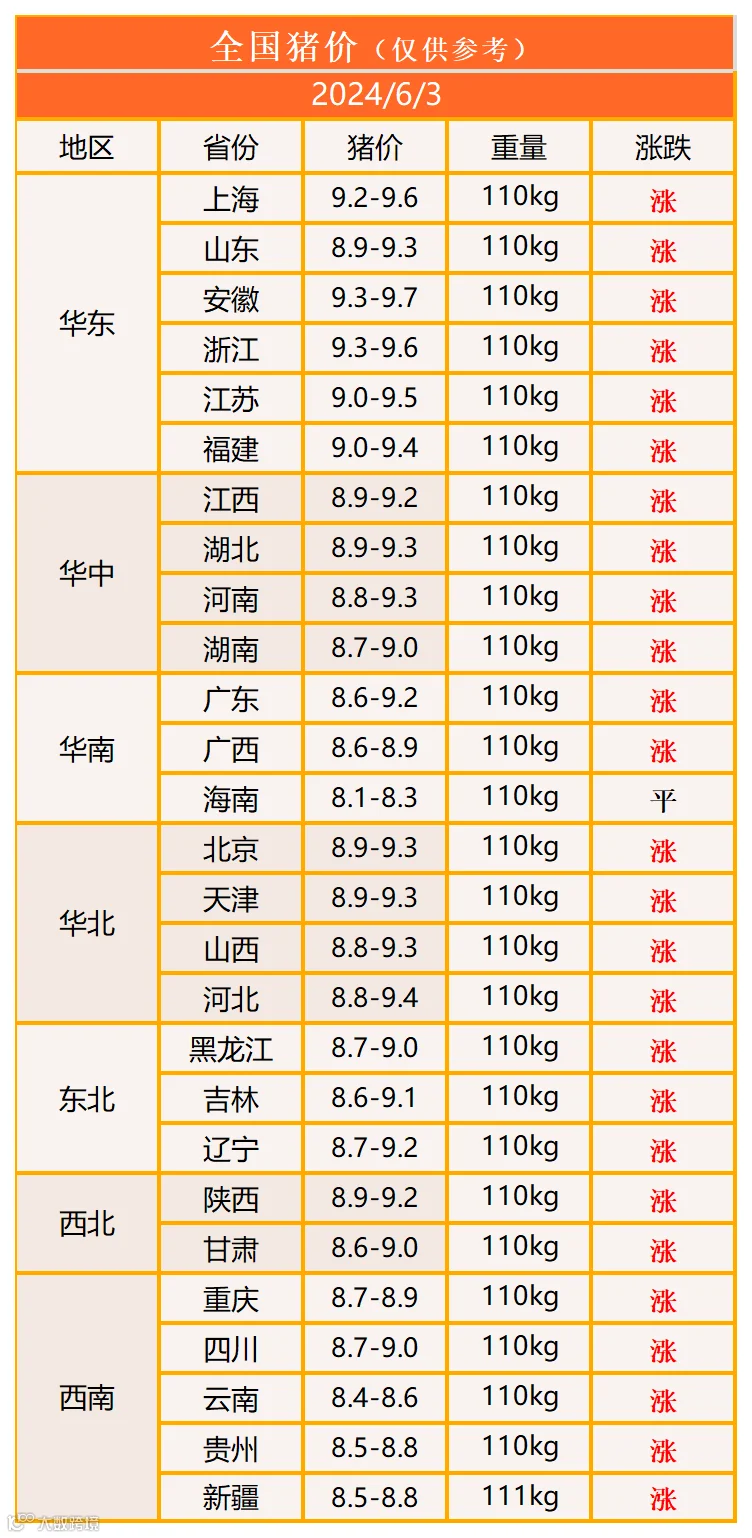明日猪价2024年6月3日猪价信息
