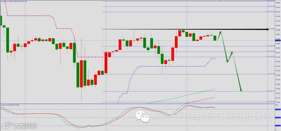 导读:今日的操作策略: 等待价格反弹至昨日高点44.98一线附近轻仓做空,止损设于45.32之上,短线目标看44.