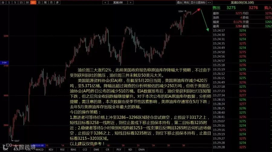 2.稳健者等待1小时级别K线跌破3253一线支撑后反弹回3265附近伺机进场做空,止损设于3286之上,短线目标看3235附近,到位下移止损保本持有,止盈目标看3215~3203区域。