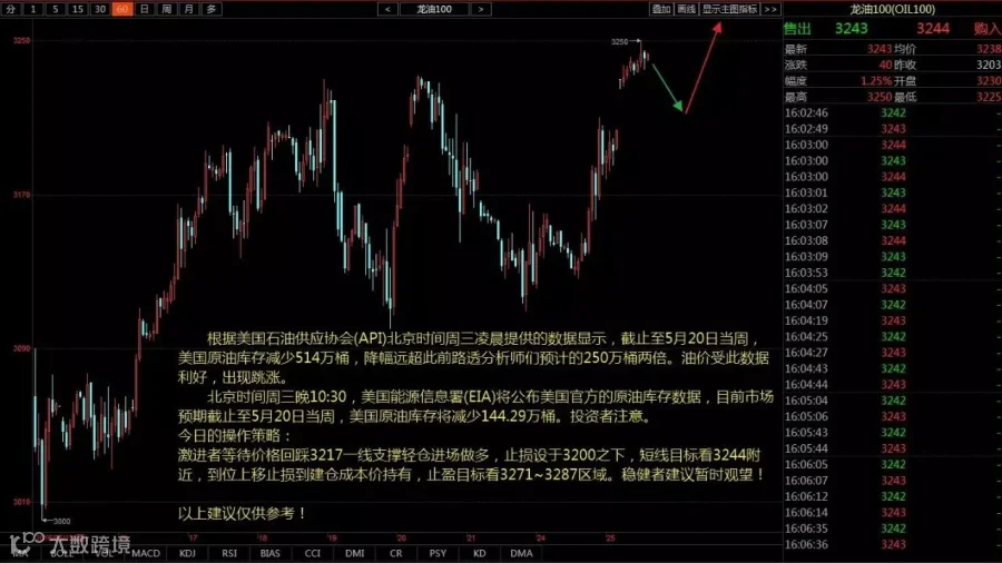 激进者等待价格回踩3217一线支撑轻仓进场做多,止损设于3200之下,短线目标看3244附近,到位上移止损到建仓成本价持有,止盈目标看3271~3287区域。稳健者建议暂时观望!