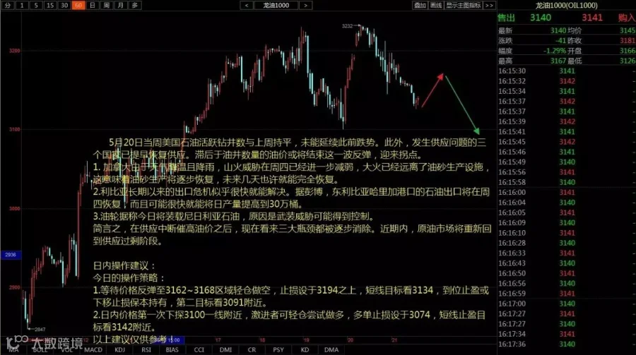 2.日内价格第一次下探3100一线附近,激进者可轻仓尝试做多,多单止损设于3074,短线止盈目标看3142附近。