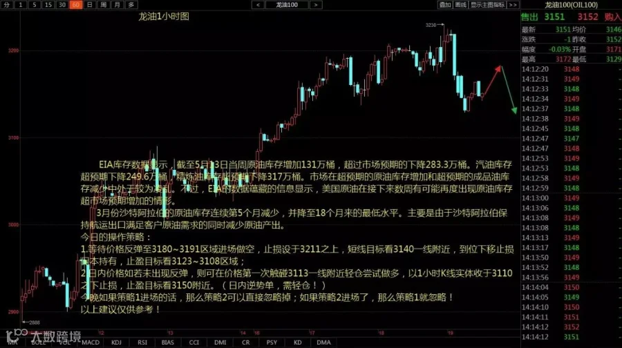 2.日内价格如若未出现反弹,则可在价格第一次触碰3113一线附近轻仓尝试做多,以1小时K线实体收于3110之下止损,止盈目标看3150附近。(日内逆势单,需轻仓!)