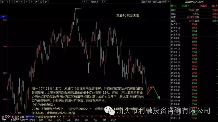 2960一线附近轻仓做空,止损设于2990之上,短线目标看2914附近,到位下移止损保本持有,止盈目标看2885附近。