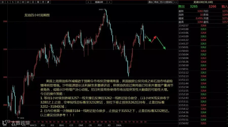 1、等待1小时级别跌破3257一线支撑后反弹回3262一线附近轻仓做空,以1小时K线实体收于3280之上止损,空单短线目标看至3232附近,到位下移止损到3262后持有,止盈目标看3202~3184区域;