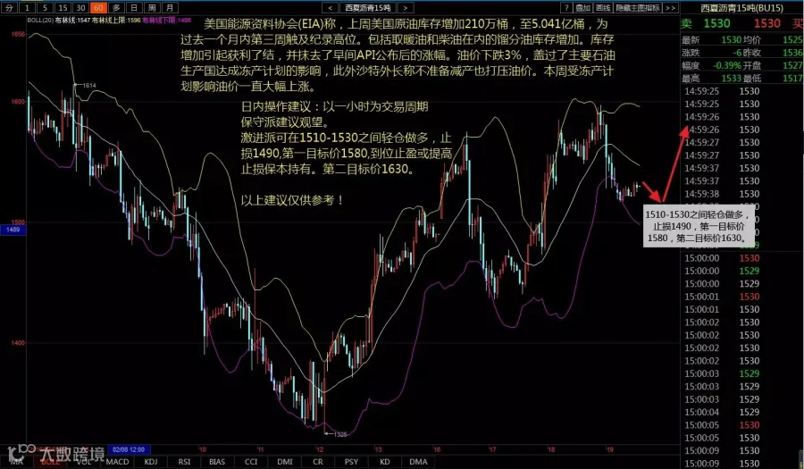 日内操作建议:以一小时为交易周期