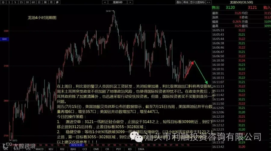 1、进空单:3121一线附近轻仓做空,止损设于3143之上,短线目标看3099附近,到位下移止损到3121后持有,止盈目标看3055~3028区域;