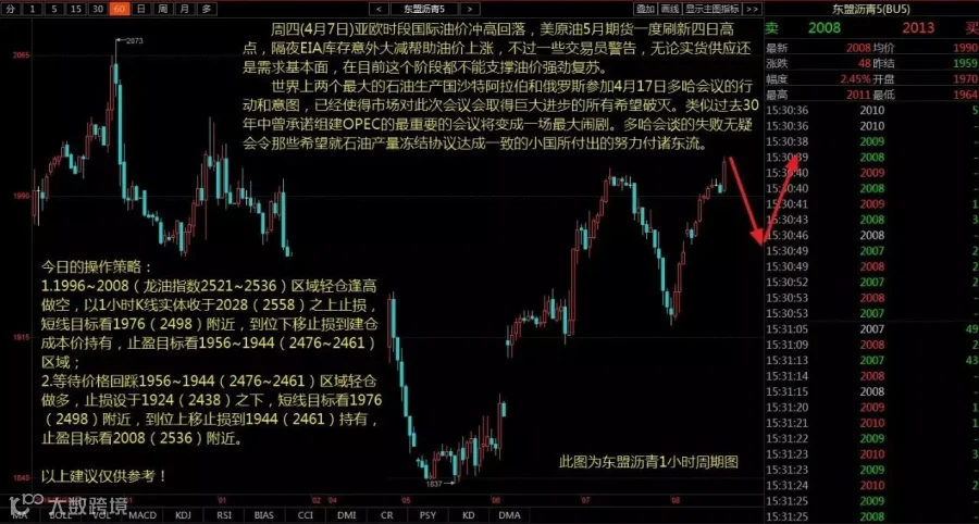 1.1996~2008(龙油指数2521~2536)区域轻仓逢高做空,以1小时K线实体收于2028(龙油2558)之上止损,短线目标看1976(龙油2498)附近,到位下移止损到建仓成本价持有,止盈目标看1956~1944(龙油2476~2461)区域;