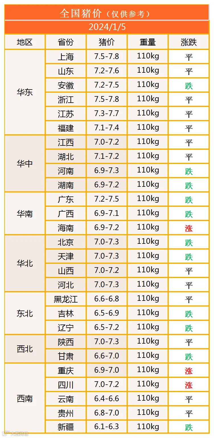 明日猪价2024年1月5日猪价信息