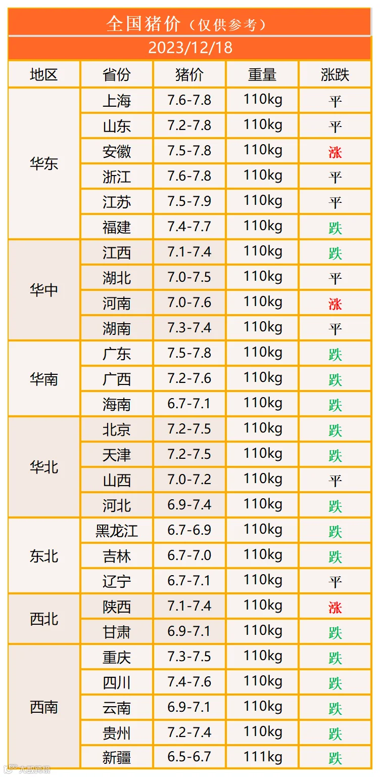 明日猪价2023年12月18日猪价信息
