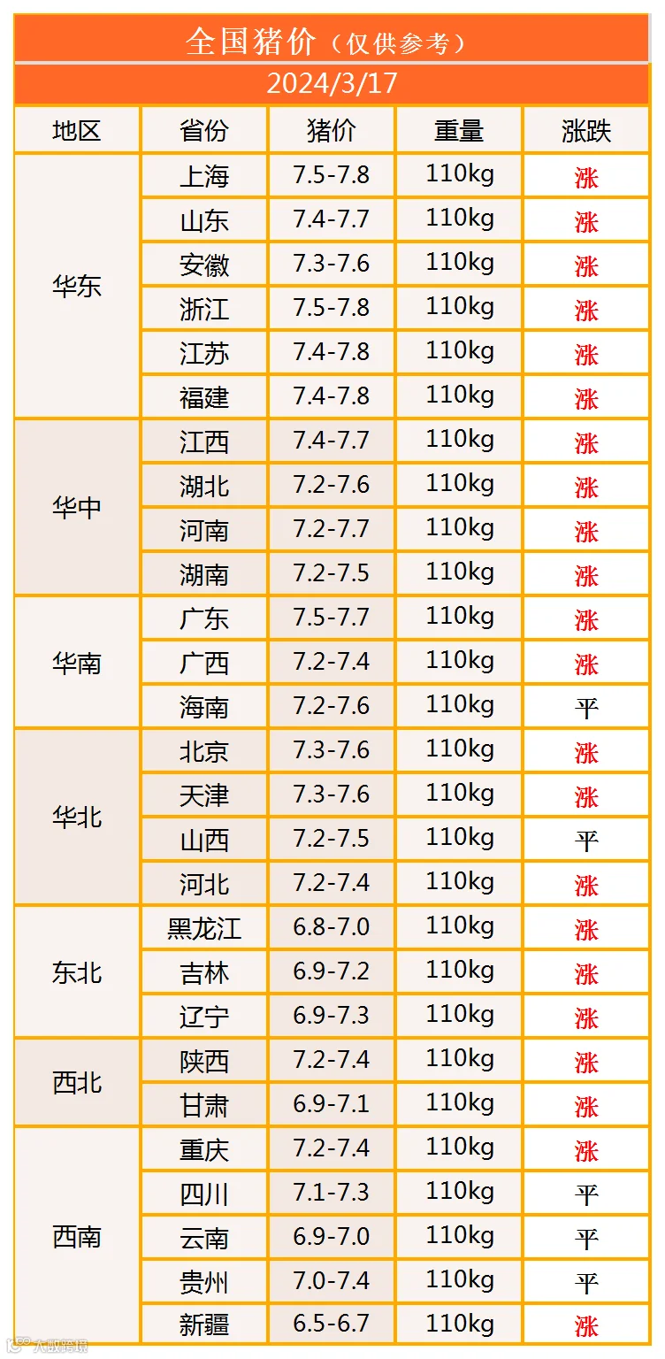 明日猪价2024年3月17日猪价信息