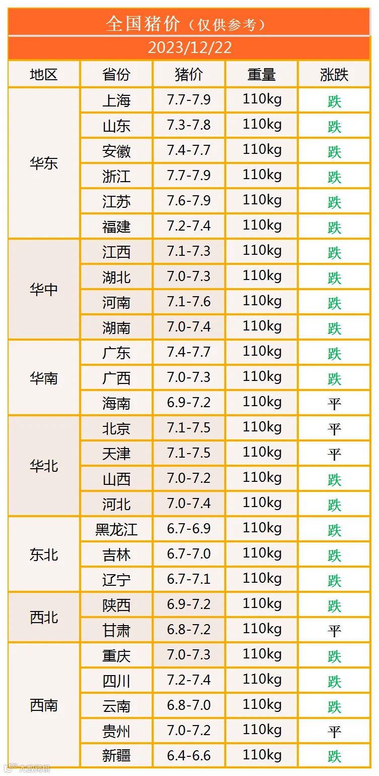 明日猪价2023年12月22日猪价信息