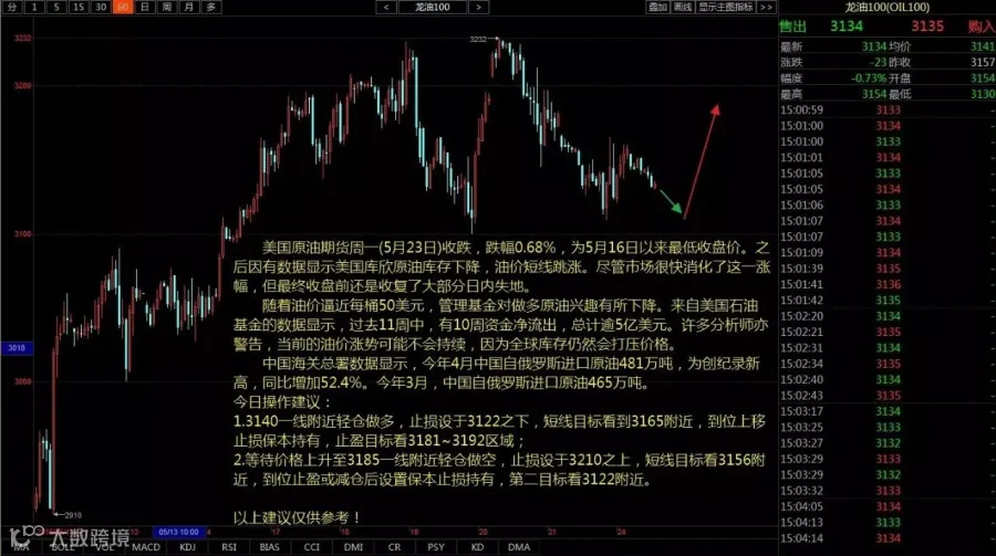 1、3140一线附近轻仓做多,止损设于3122之下,短线目标看到3165附近,到位上移止损保本持有,止盈目标看3181~3192区域;