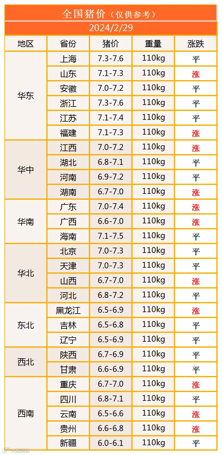 明日猪价2024年2月29日猪价信息