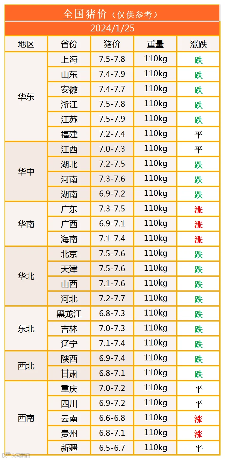 明日猪价2024年1月25日猪价信息