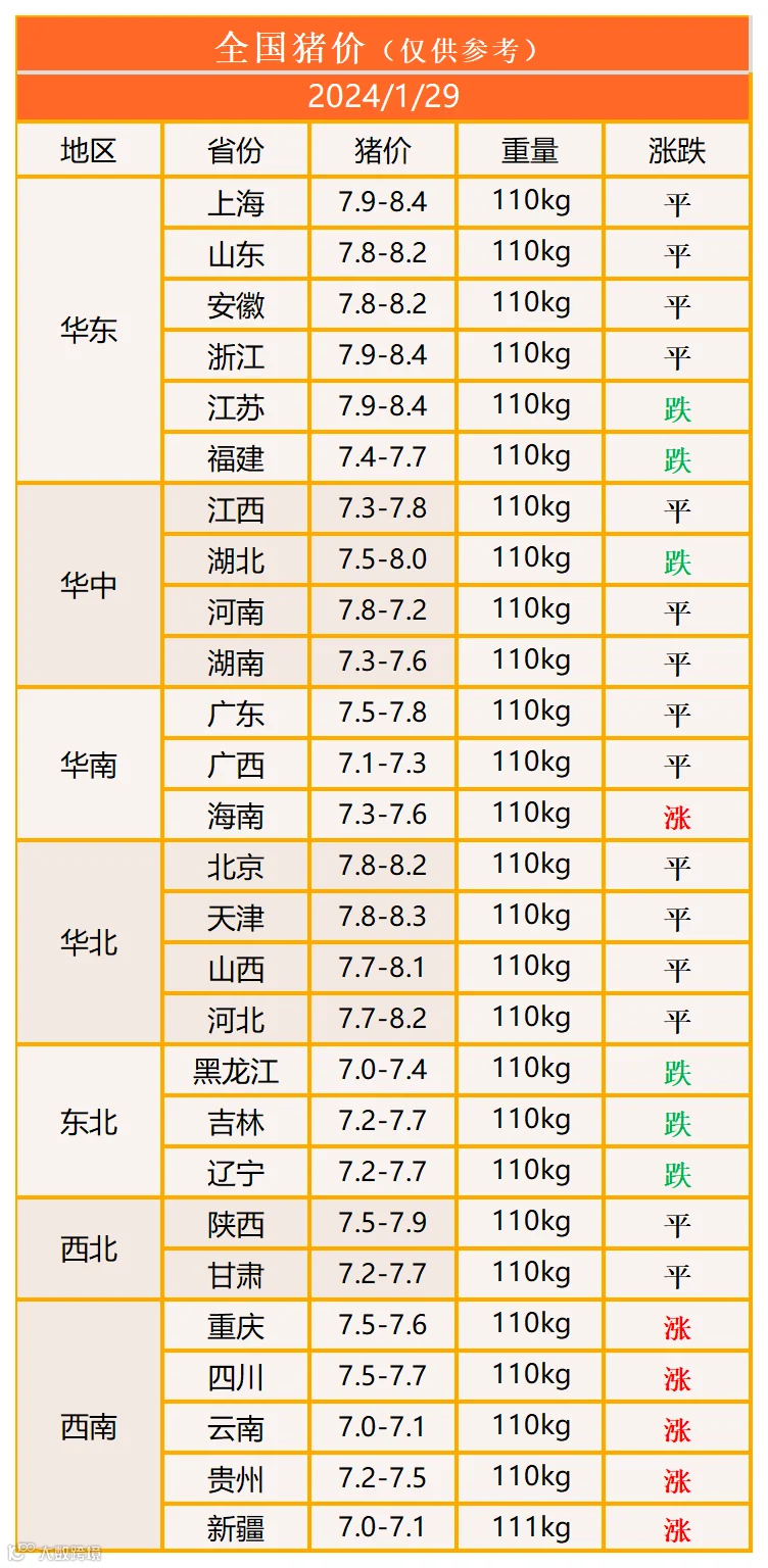 明日猪价2024年1月29日猪价信息