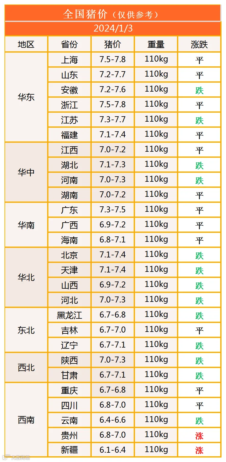 明日猪价2024年1月3日猪价信息