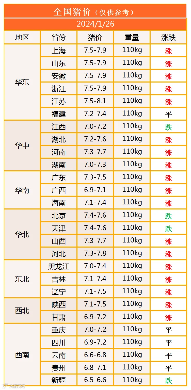 明日猪价2024年1月26日猪价信息