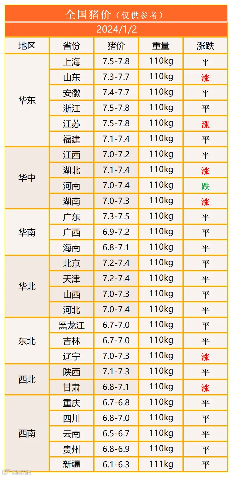 明日猪价2024年1月2日猪价信息