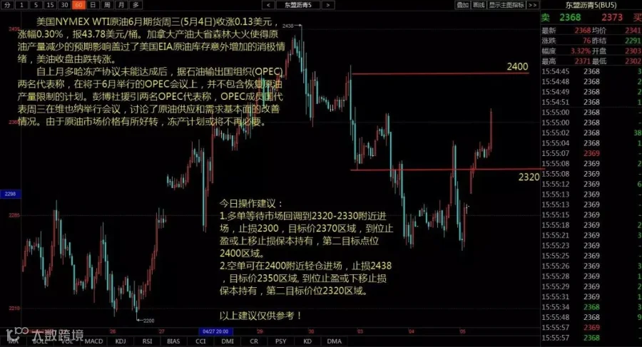 1.多单等待市场回调到2320-2330附近进场,止损2300,目标价2370区域,到位止盈或上移止损保本持有,第二目标点位2400区域;