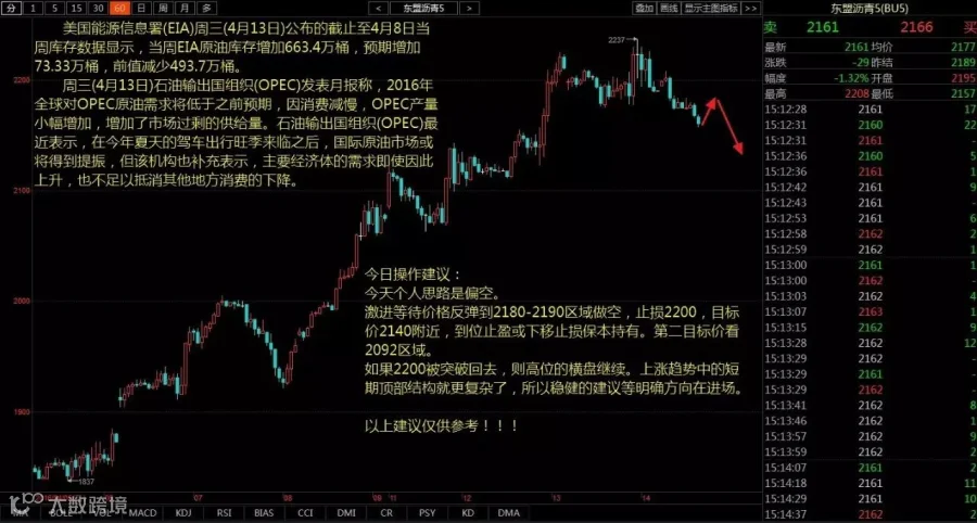 激进等待价格反弹到2180-2190区域做空,止损2200,目标价2140附近,到位止盈或下移止损保本持有。第二目标价看2092区域。