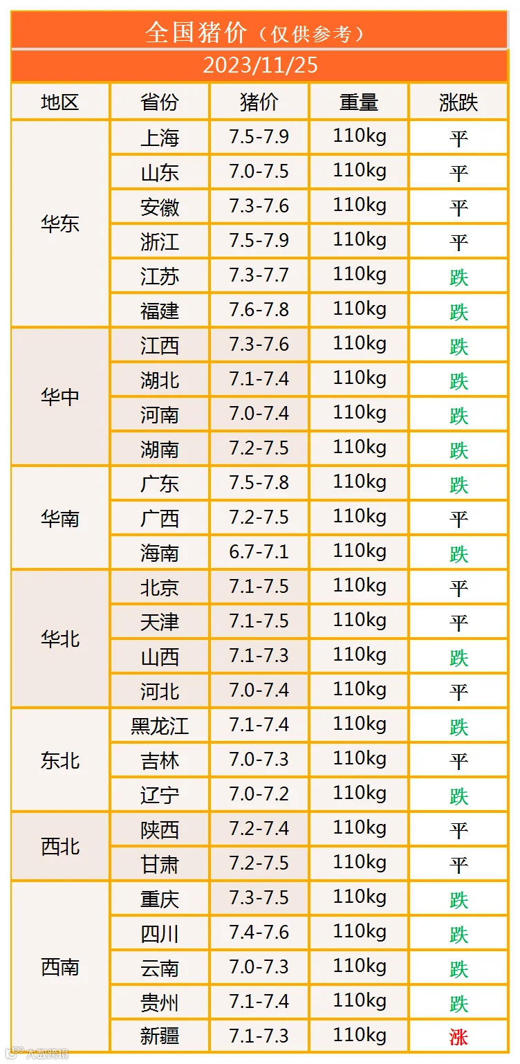 明日猪价2023年11月25日猪价信息
