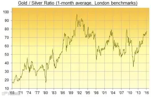 数据显示,1个月均值的金价/银价触及了7年新高。