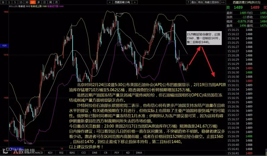 可以看到近几日的价格一直在区间震荡,不突破趋势不明朗。稳健者建议多看少动。激进者可在区间范围内高抛低吸,或者在价格回到1529附近轻仓做空。止损1560,目标价1470,到位止盈或下移止损保本持有,第二目标价1440。