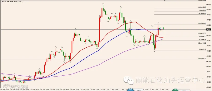 从1小时的走势看,昨晚在EIA库存数据大幅度利空的情况下,走出了一波深V行情。短期多空双方博弈激烈,上方的压力位在2237~2280区域,下方的短线支撑在2168.
