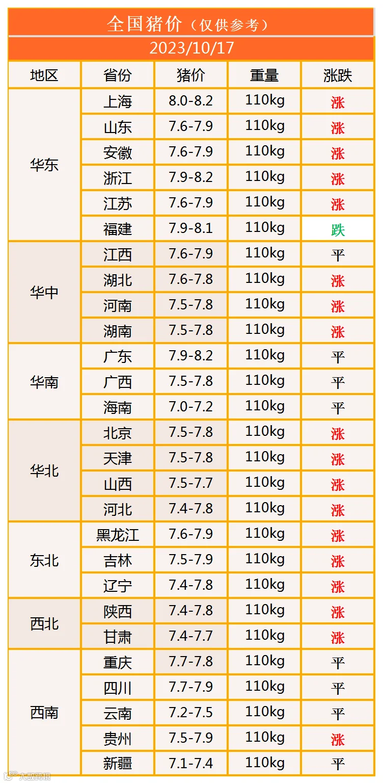 明日猪价2023年10月17日猪价信息
