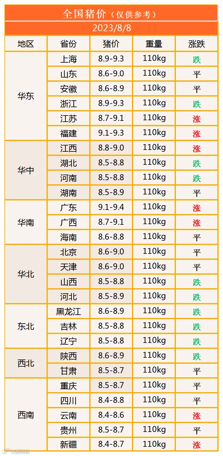 明日猪价2023年8月8日猪价信息