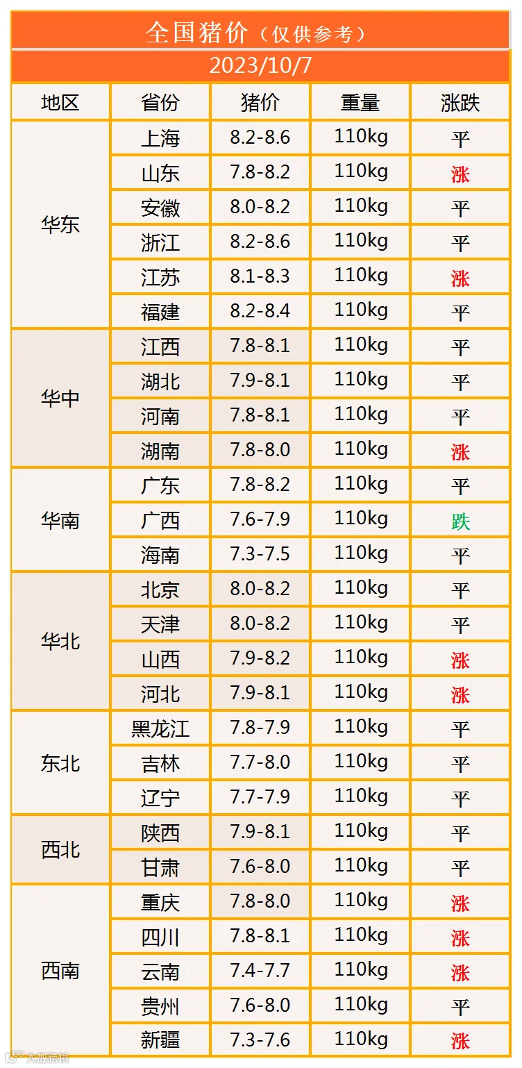 明日猪价2023年10月7日猪价信息