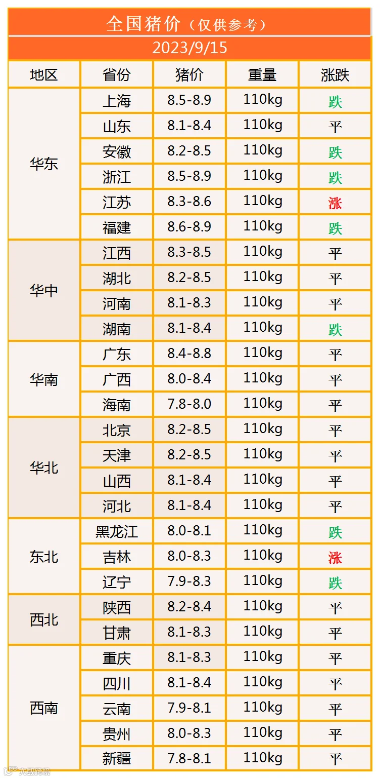 明日猪价2023年9月15日猪价信息