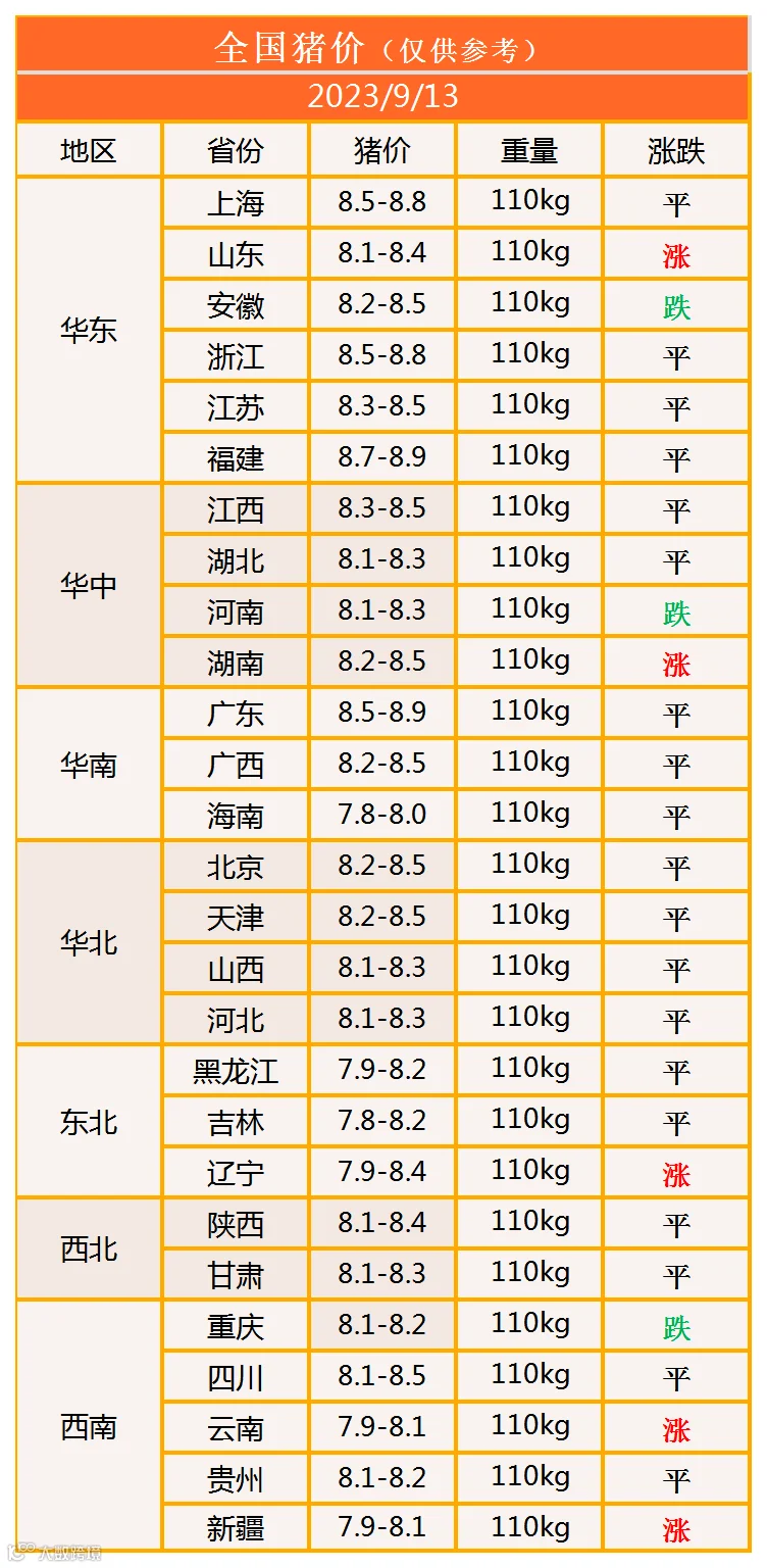 明日猪价2023年9月13日猪价信息