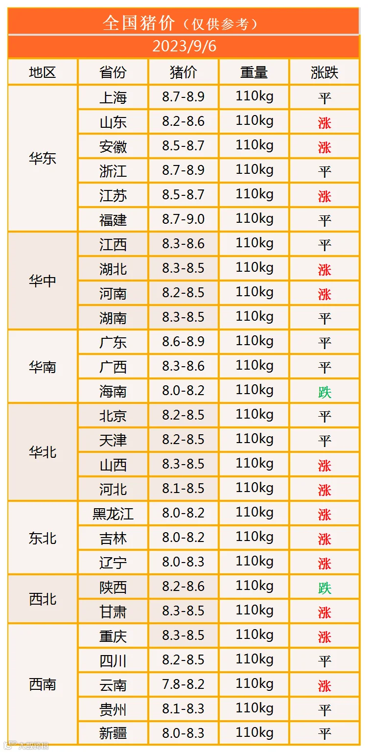 明日猪价2023年9月6日猪价信息
