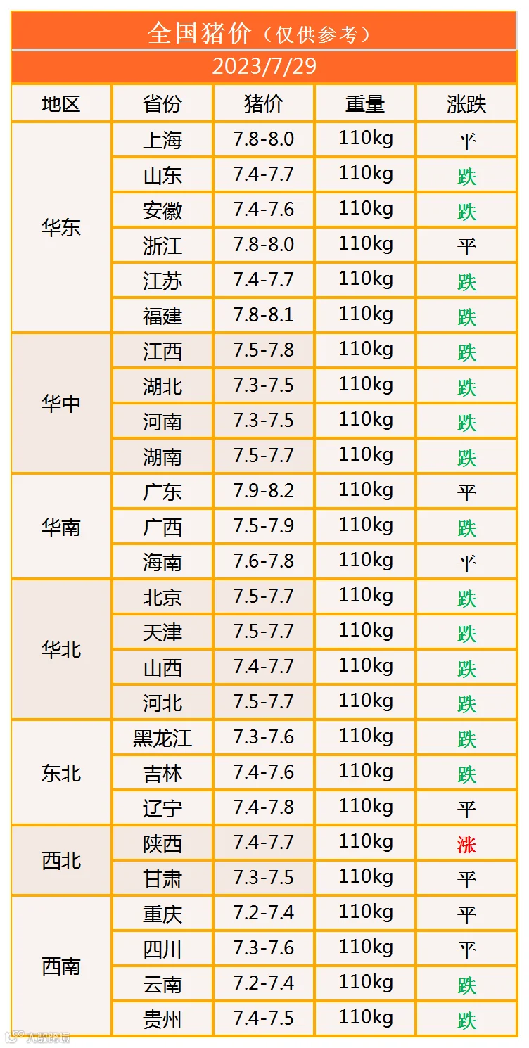 明日猪价2023年7月29日猪价信息