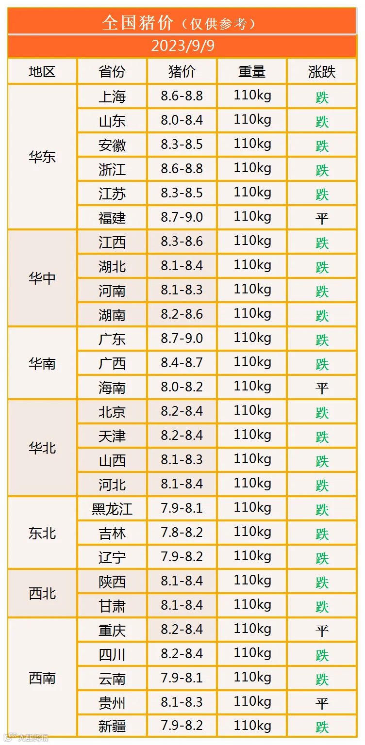 明日猪价2023年9月9日猪价信息