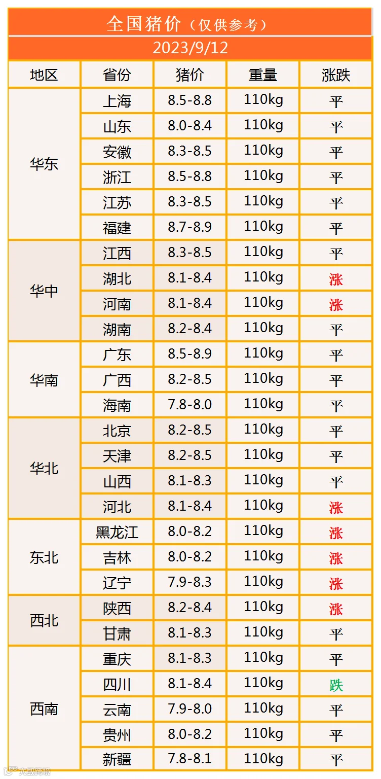 明日猪价2023年9月12日猪价信息