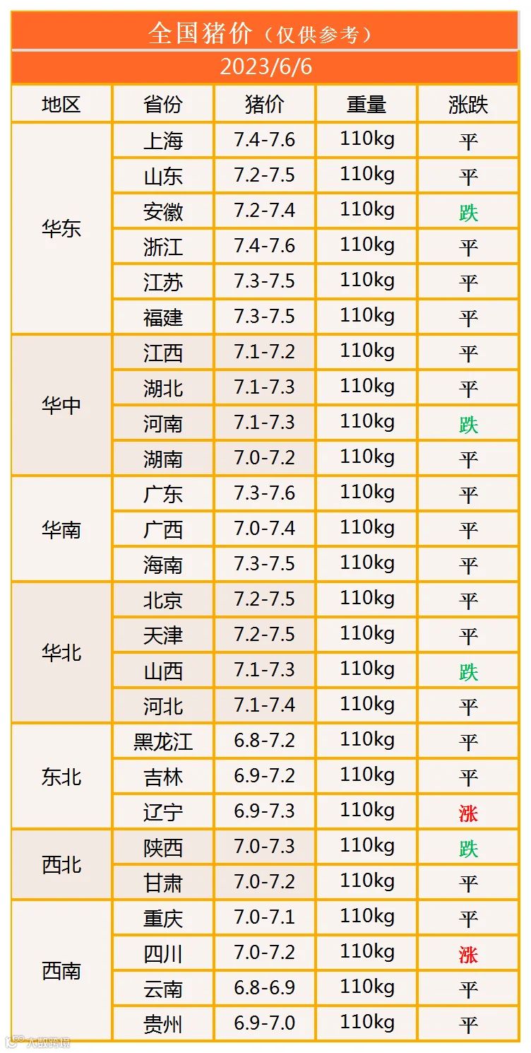 明日猪价2023年6月6日猪价信息