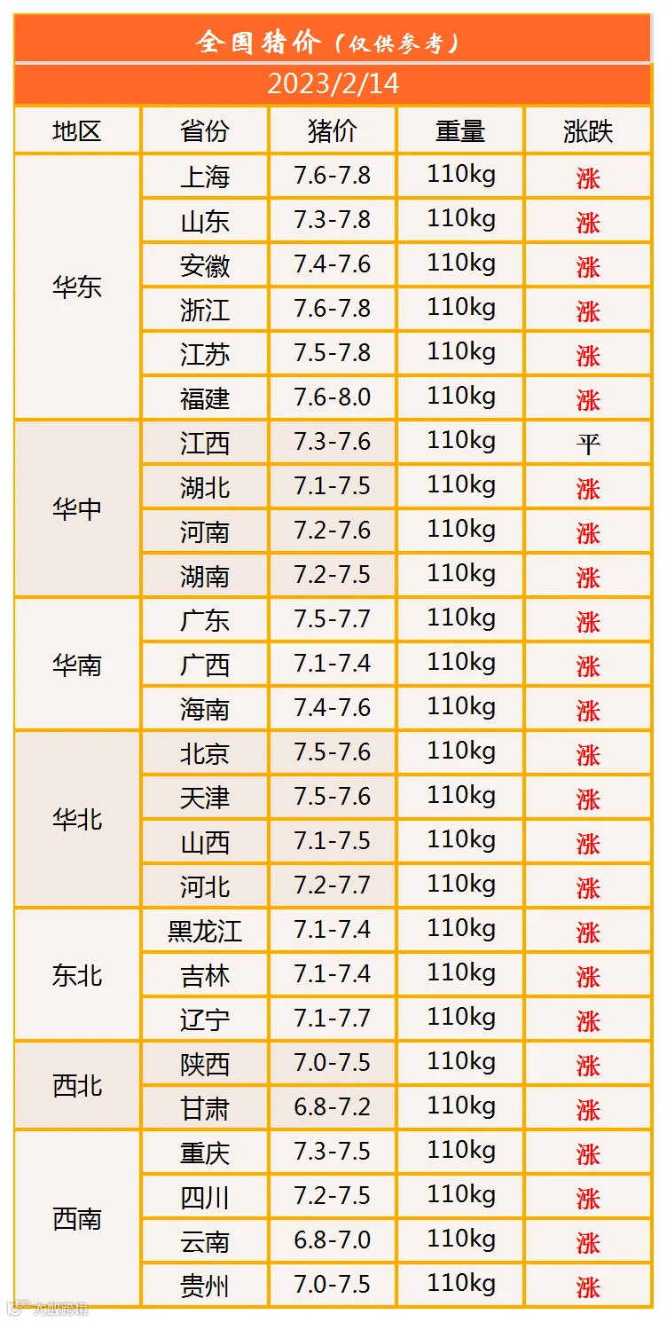 明日猪价2023年2月14日猪价信息