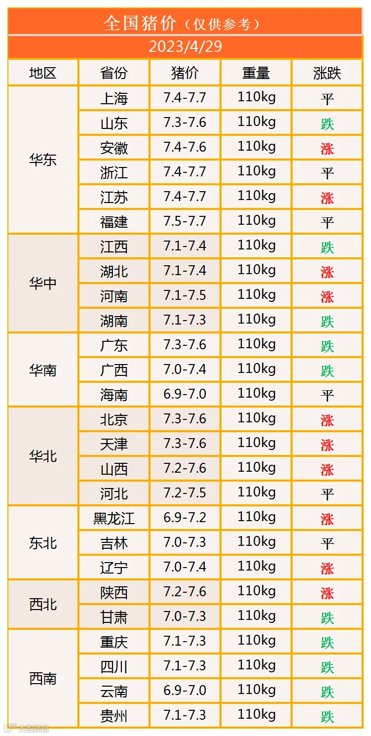 明日猪价2023年4月29日猪价信息