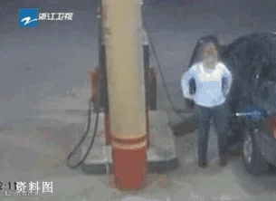一个身穿化纤衣服的女子靠近油枪时,突然蹿起来了很大的火花
