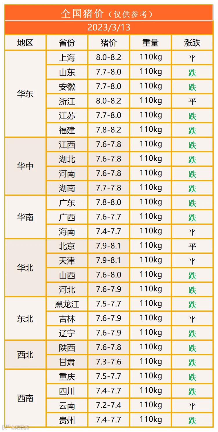 明日猪价2023年3月13日猪价信息