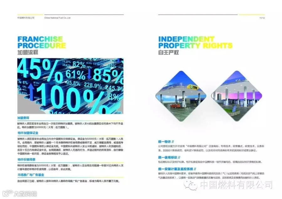 依托中国燃料品牌优势、科学创新油气销售运营模式,全新打造加油(气)站特许加盟服务体系,逐步建立覆盖全国集功能于一体的市场营销综合服务平台,实现从“品牌、采购、质量、价格、计量、储备、配送”等统一,延伸到统一“营销政策、服务标准、金融结算及信息发布”等综合服务网络。