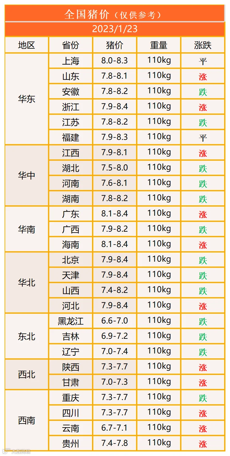 明日猪价2023年1月23日猪价信息