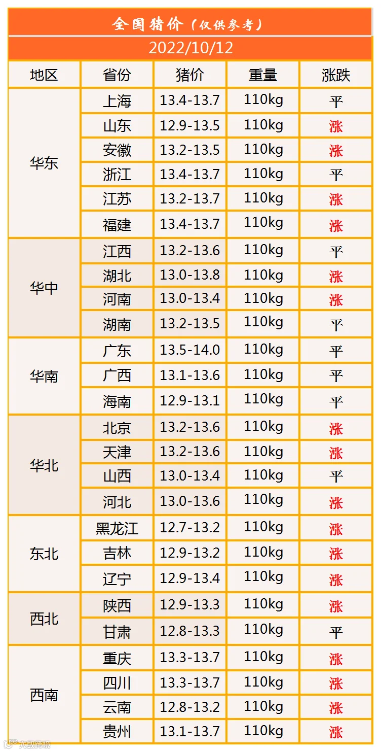 明日猪价2022年10月12日猪价信息