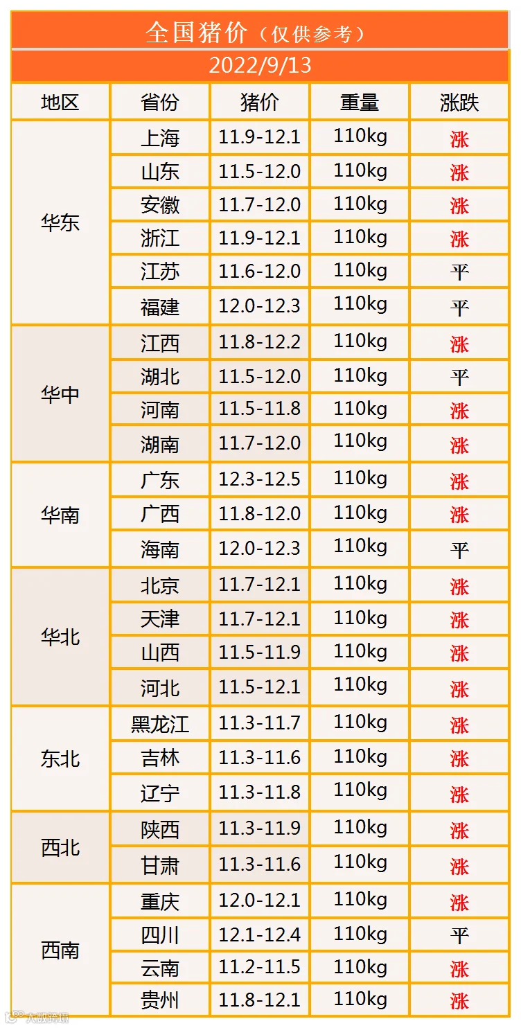 明日猪价2022年9月13日猪价信息