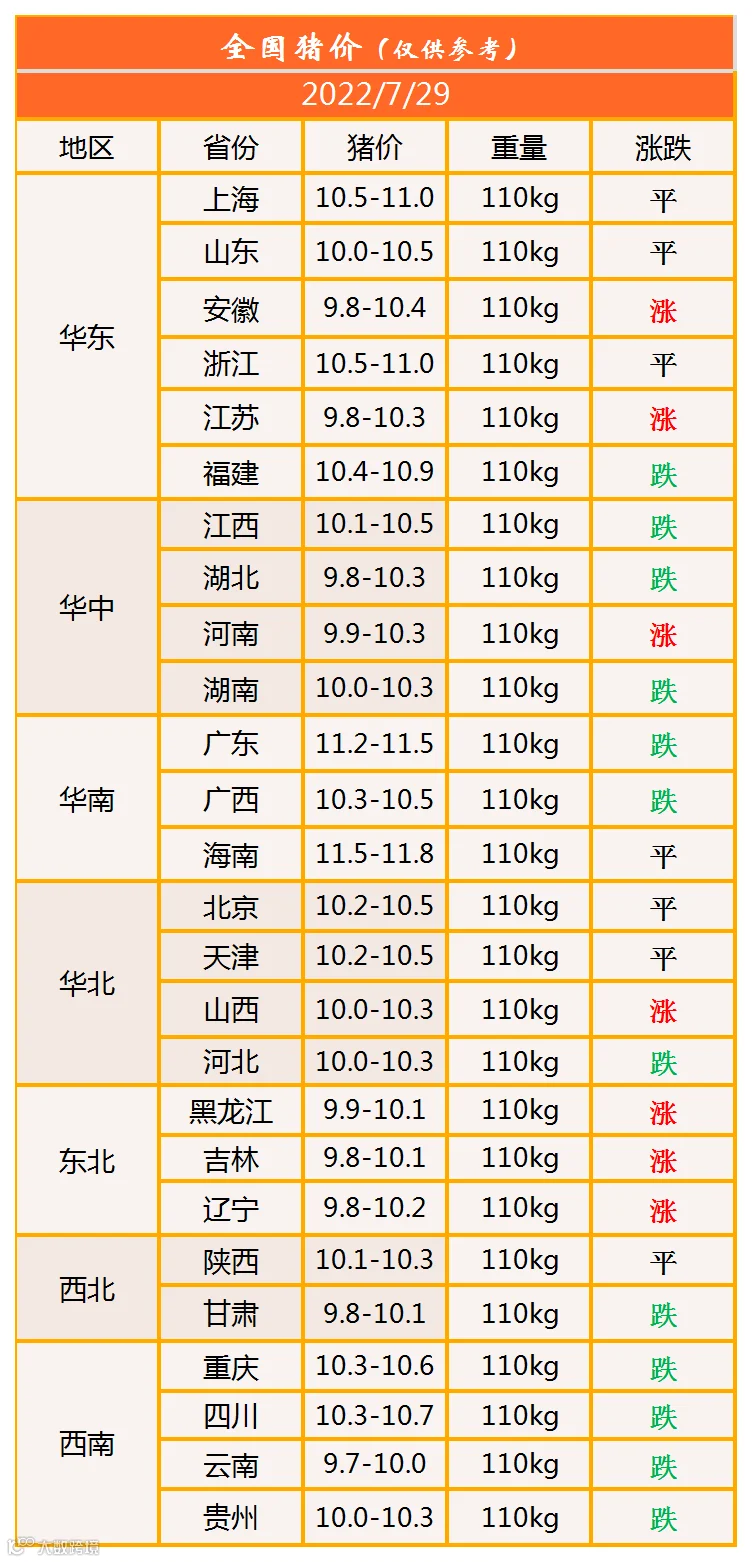 明日猪价2022年7月29日猪价信息